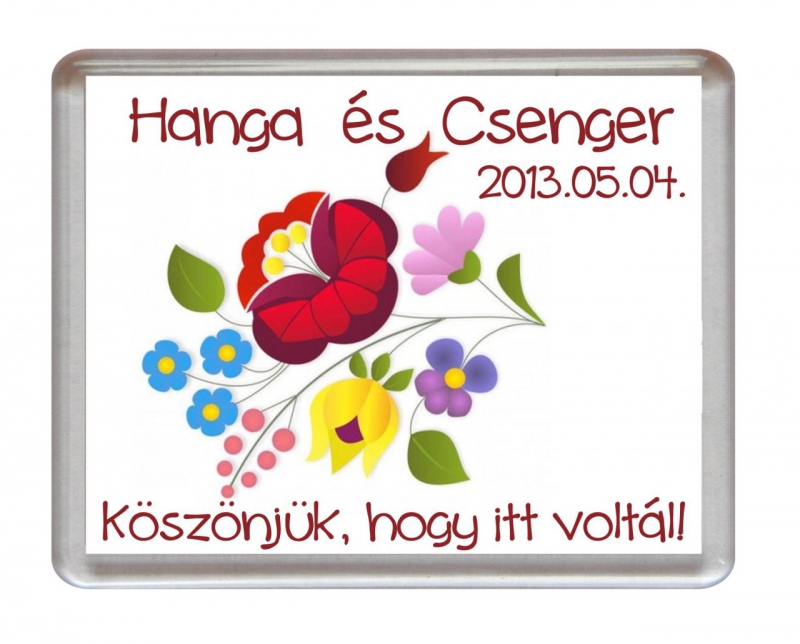 A hűtőmágnesnek kétféle kerete lehet: plexi (átlátszó műanyag) vagy kerámia. A kerámia keret színét, illetve a felirat színét a képgalériában feltöltött színskálából választhatod ki, melyet ne felejts el megrendeléskor megírni!